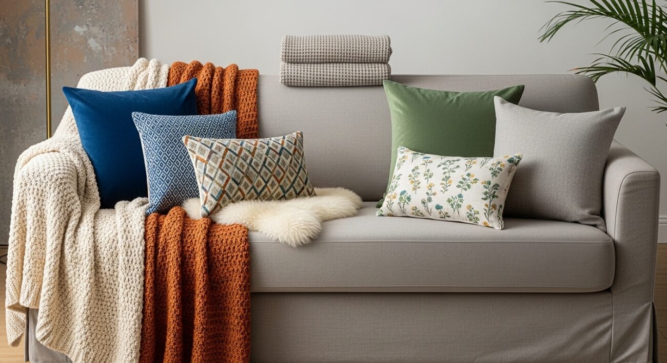 Jak dobrać poduszki i narzuty do wystroju salonu? Twój przewodnik do przytulnej elegancji!